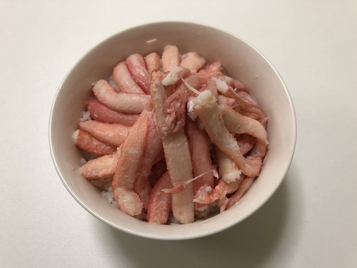 ということで、かに丼にしてみました!元々ボイルされてあるので、そのまま食べることもできるのが良い。