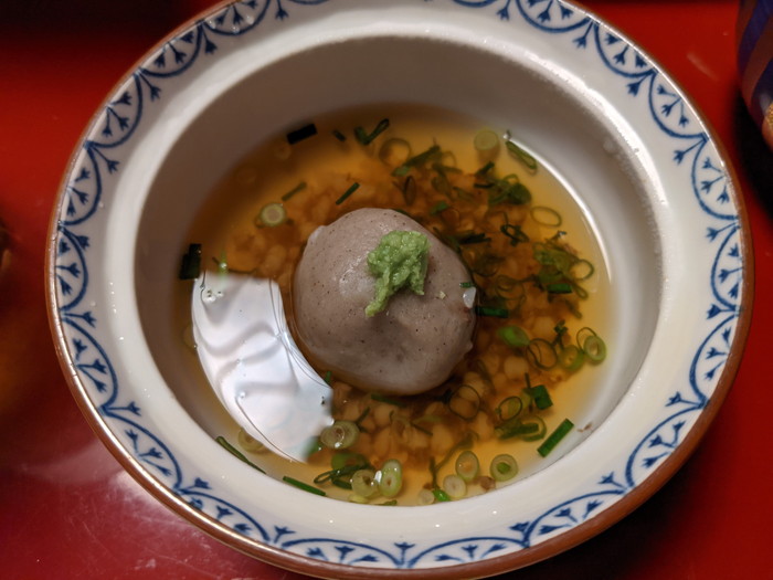 これはたしか桜海老の道明寺蒸し。お団子みたいな食感で、もうちょっとフワッとしていれば良かったかなぁという印象。